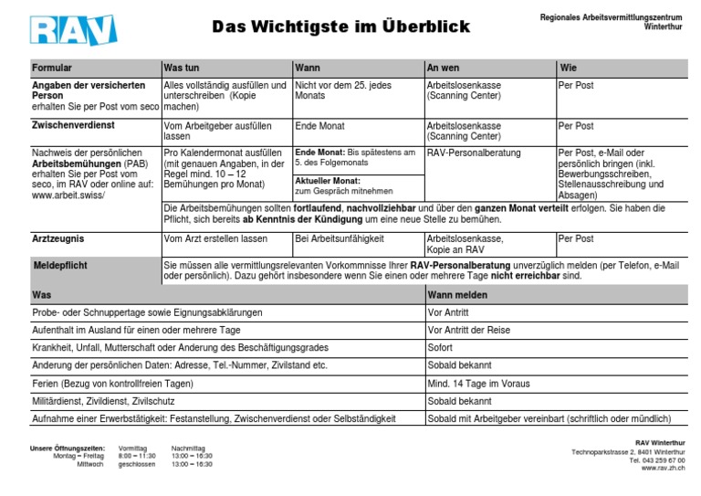 arbeitsbemühungen rav zürich
