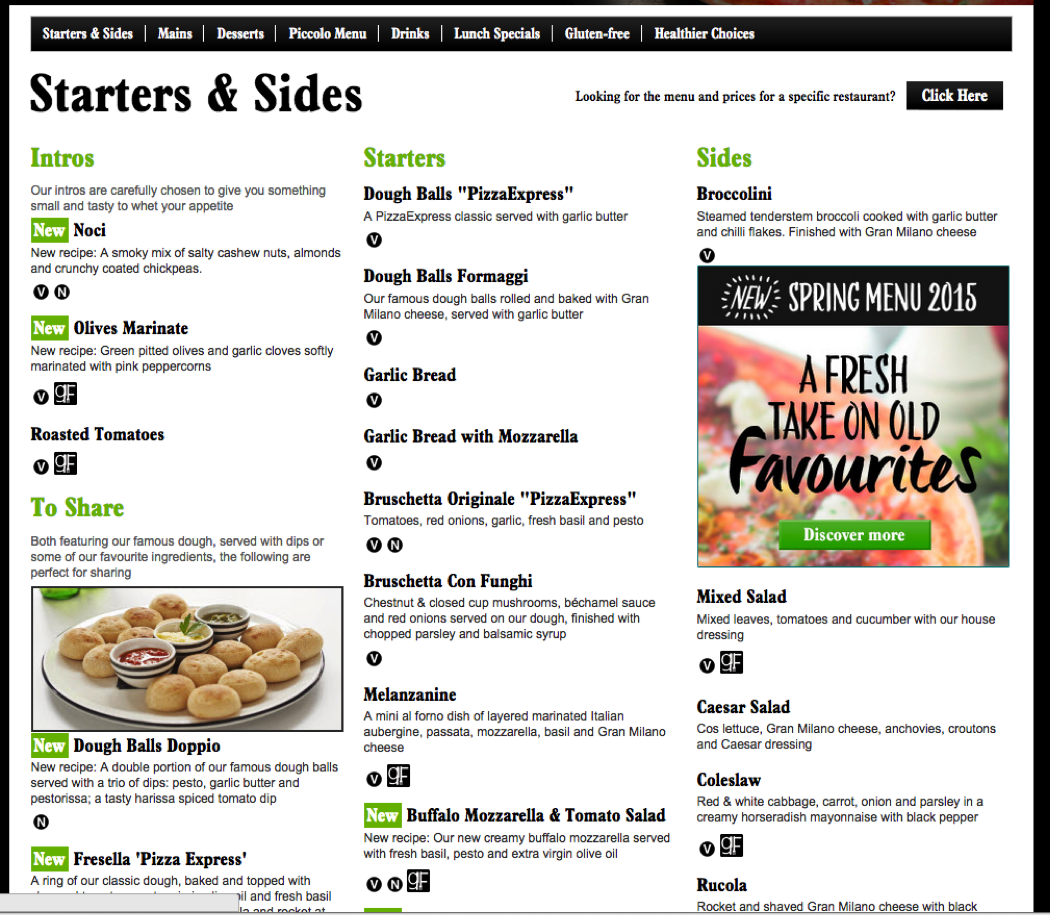 pizza express menu